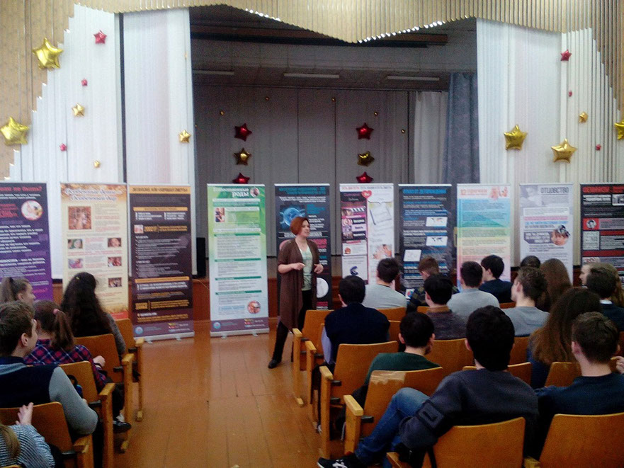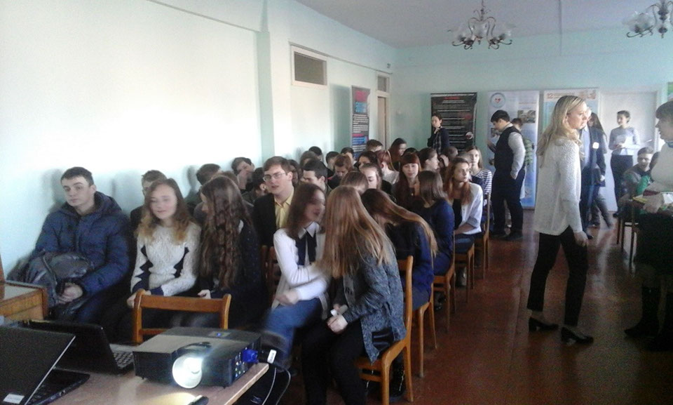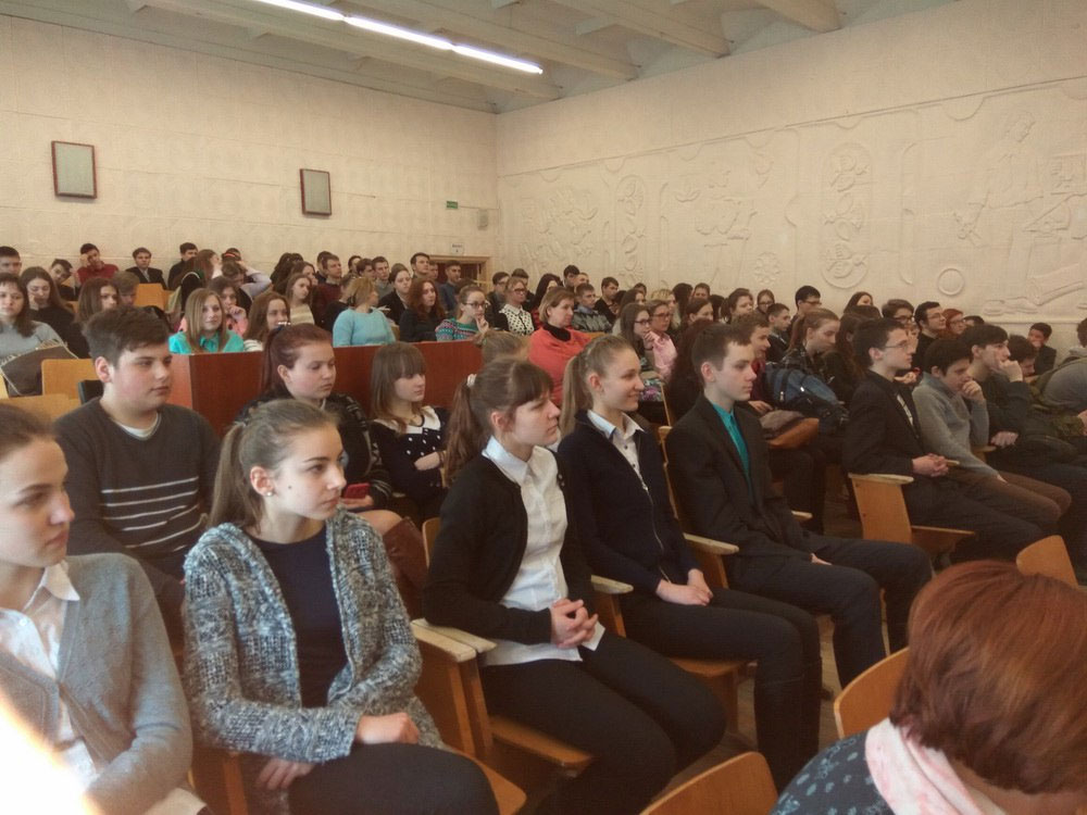 Презентация выставки проходила перед учащимися 8-11-х классов.