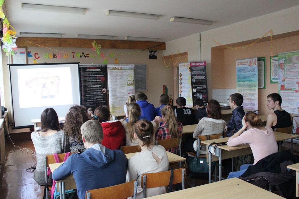 Презентация выставки проходила перед учащимися 8-9-х и 10-11-х классов.