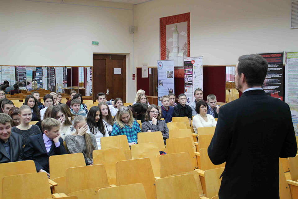 Презентация выставки проходила перед учащимися 9-11-х классов.