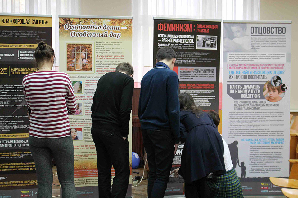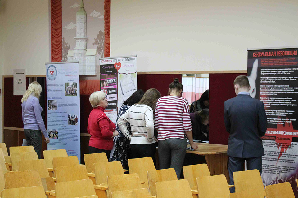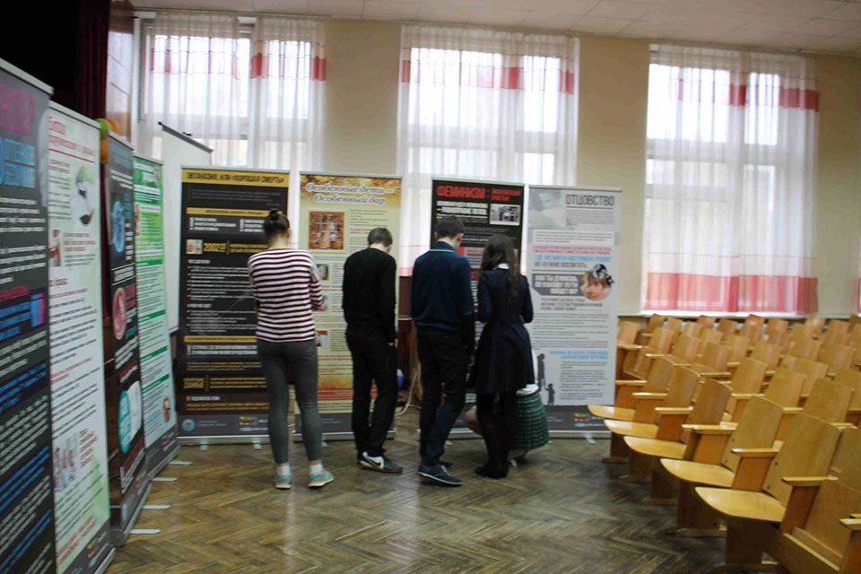 Презентацию выставки для учеников 9-11 классов могилевской гимназии №4 проводили Владислав Волохович и о. Василий Егоров. По итогам презентации педагогами гимназии было предложено продолжить сотрудничество с «Открытыми сердцами» в будущем. Дети с удовольствием описали свои впечатления от выставки в книге отзывов.
