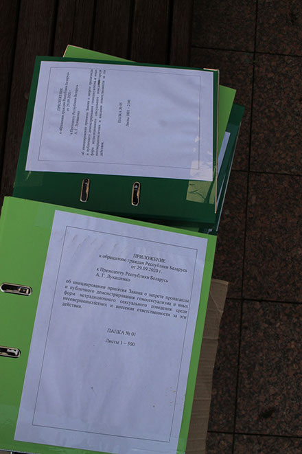 22 октября 2020 года состоялась передача в Администрацию Президента коллективных обращений к Президенту с просьбой инициировать принятие Национальной программы по защите традиционных семейных ценностей, а также закона о запрете пропаганды половых извращений несовершеннолетним. Под коллективными письмами подписались 52600 граждан Республики Беларусь.