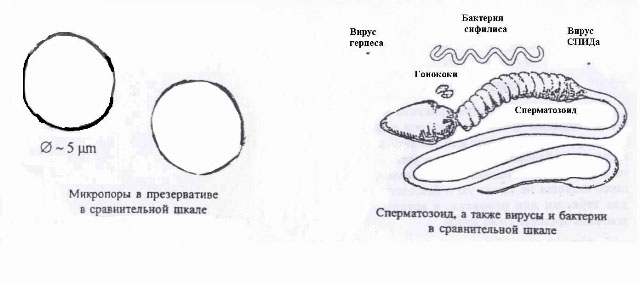 8. Существуют естественные недостатки натурального каучука (латекса), которыми являются поры в диапазоне от 5 до 70 микрон в диаметре. [C.M. Roland. "The Barrier Performance of Latex Rubber." RubberWorld ["The Technical Service Magazine for the Rubber Industry"], June 1993 [Volume 208, Number 3]. Средний размер вируса СПИДа составляет около 0,1 микрона. [C.M. Roland, Ph.D., Editor, Rubber Chemistry and Technology and Head of the Polymer Properties Section, Naval Research Laboratory. Letter entitled "Do You Want to Stake Your Life on a Condom?" Washington Times, April 22, 1992.] Это означает, что, с точки зрения размера, вирус СПИДа может пройти через поры латекса так же легко, как домашняя кошка может ходить через открытые двери гаража.