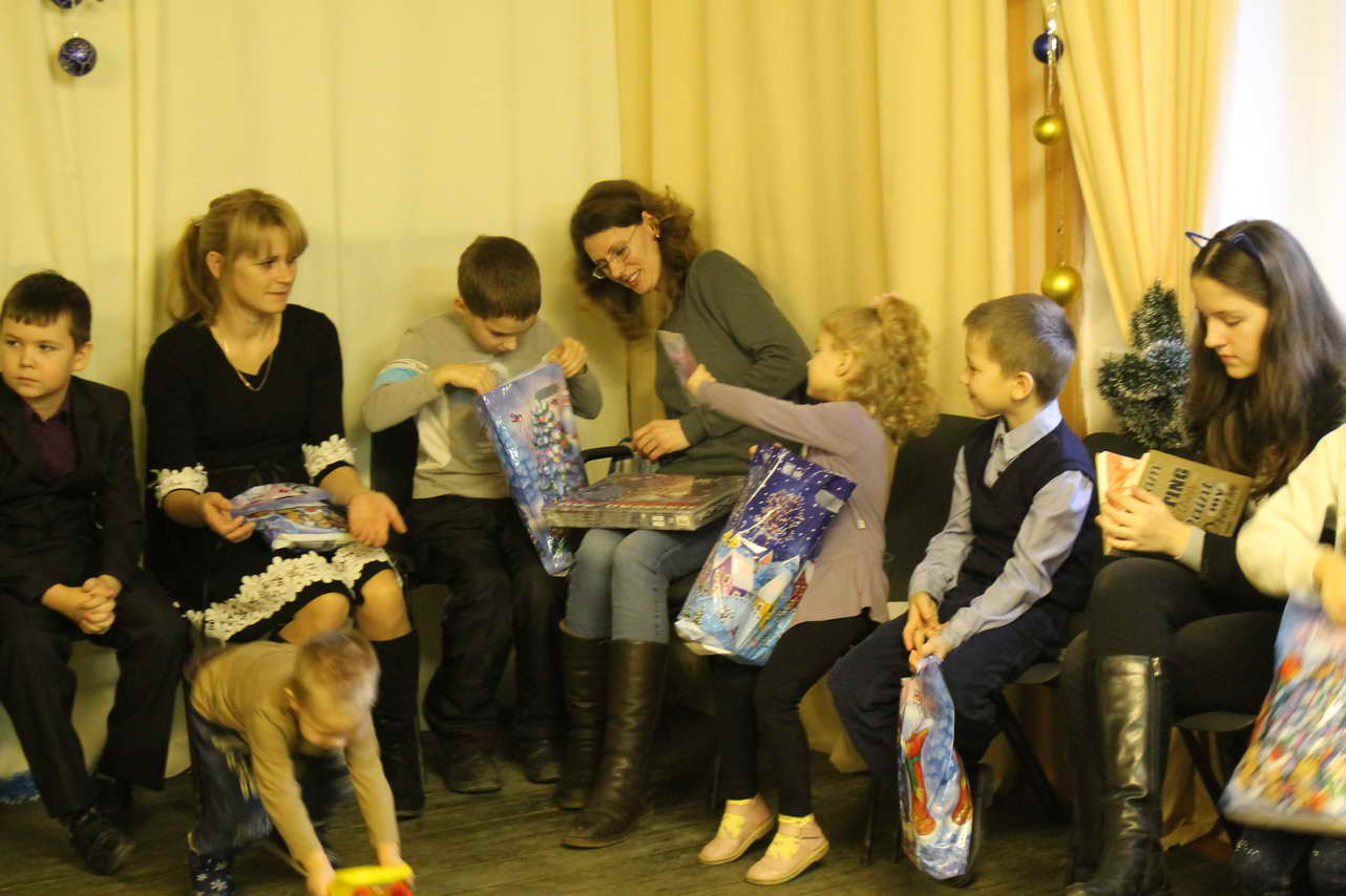 Важным акцентом оказался момент вручения подарков «сказочным» детям, а также их братикам и сестричкам. «Берись дружно, не будет грузно». Именно так в этом году поступили волонтёры благотворительного фонда «Открытые сердца». Активное участие в формировании подарков принимали прихожане католических приходов города Могилёва. Благодаря их помощи в этот день сияло так много радостных улыбок. И финальным аккордом праздника стал сладкий стол. Большое спасибо всем неравнодушным людям, которые внесли свой вклад в подготовку и проведение прекрасного праздника.