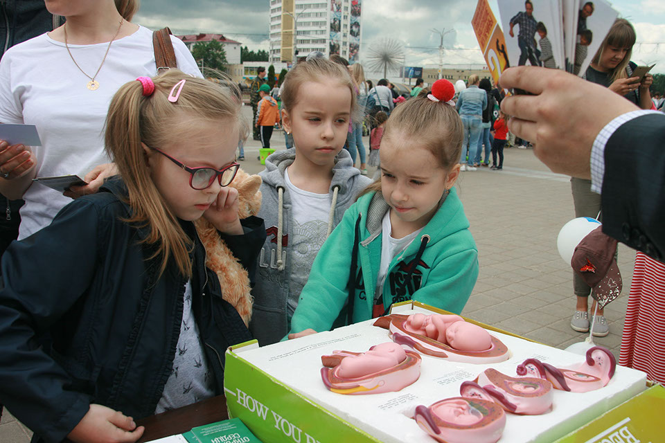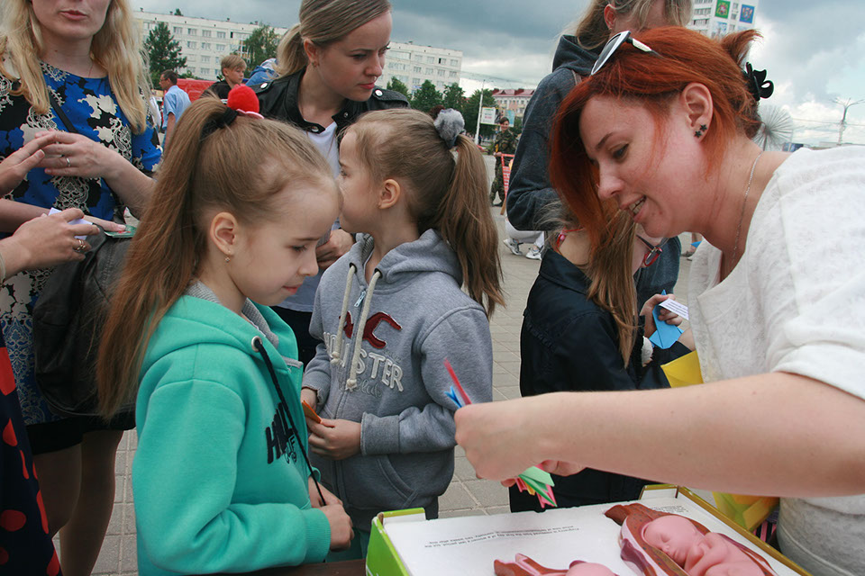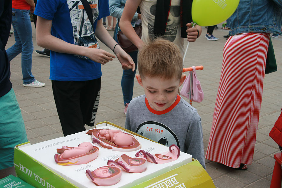Напомним, что уже не первый год в этот день МЧС Витебска организовывает для жителей города грандиозный праздник, полный всевозможных забав и развлечений, и каждый раз фондовская акция как никогда кстати вписывается в общую канву мероприятия. К слову сказать, в нынешнем году фонд участвовал в мероприятии в новом для себя амплуа – в качестве спонсора! Сотрудниками были разработаны и подготовлены подарочные наборы для участников долгожданного и всеми любимого «Забега в ползунках». По доброй традиции не остались без внимания детей и взрослых буклеты, воздушные шарики и голубки с личным посланием. Но особый ажиотаж разгорелся вокруг активно-интерактивного столика, ведь только здесь можно было принять участие в увлекательной игре о женском и мужском детородном здоровье, узнать больше о ценности и жизни маленького человека на протяжении 9 месяцев беременности и познакомиться с Методами распознавания плодности.