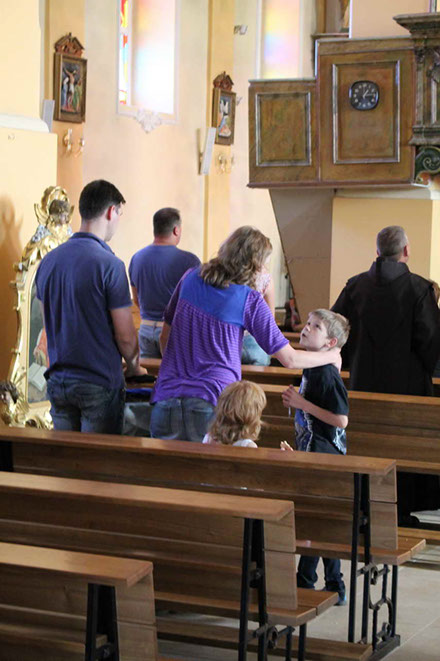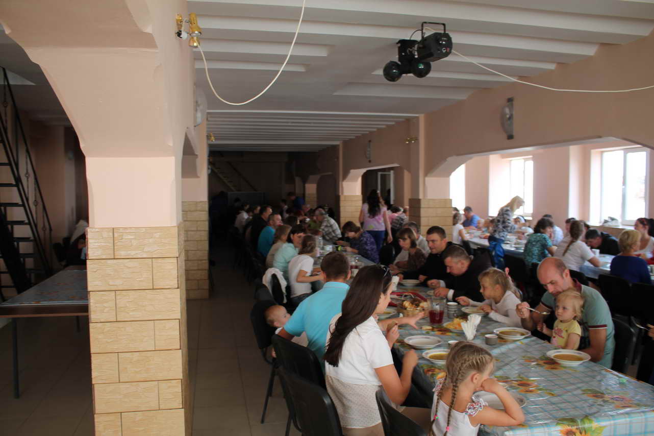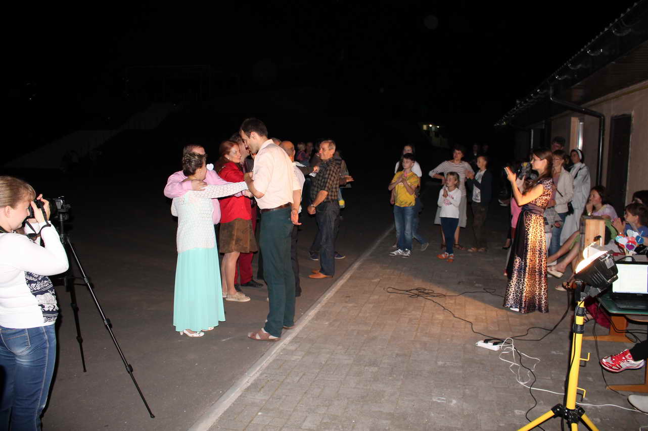 Этой встреча семей была десятой по счету и ее особенностью стали майстэрни – работа в нескольких группах, на которые были разделены участники. Мужчины работали над своей мужественностью, молодые женщины думали о женственности и учились строить семейное счастье, а женщины, имеющие значительный опыт семейной жизни, делились секретами и мудростью. Изюминкой и кульминацией паломничества стал семейный бал, который прошел в субботу вечером прямо на улице перед Санктуарием Матери Божьей. Тихий теплый вечер, звездное небо, прекрасная музыка и бальные танцы – все это стало чудесным дополнением к молитвенной части встречи, доставив участникам и организаторам большую радость и незабываемые впечатления. Супружеские пары, приехавшие на встречу, показали, что они умеют не только работать над своей духовностью, но и умеют отдыхать и веселиться, ведь семейная жизнь – это не только одни лишь проблемы и заботы.