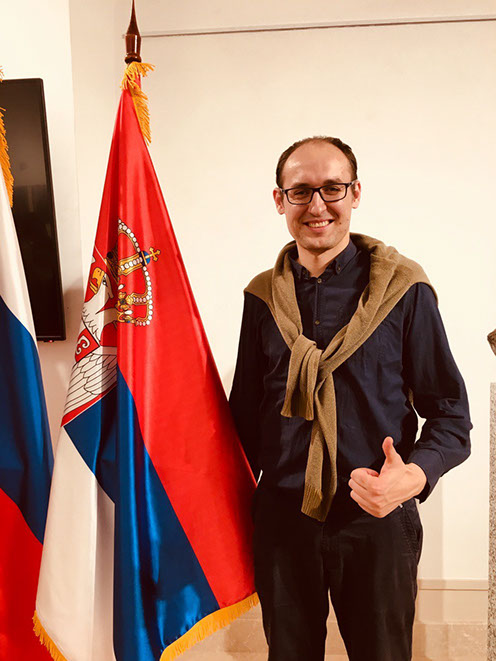 В первый день 7 ноября программа была построена классическим для подобного мероприятия образом. В первой половине дня состоялись пленарные заседания, прозвучали речи высокопоставленных лиц, в том числе и послания президентов разных стран. Эту часть форума, к сожалению, мы пропустили, прибыв только к обеду в гостиницу Москва, располагающуюся в самом центре Белграда. Вторая половина дня включала в себя культурную программу в Доме России. На концерте, который был очень вдохновляющим, выступали оперные певцы из Мариинского театра. По окончании праздника участники ощутили прилив патриотизма, поскольку песни прозвучали старые, классические, в основном русские романсы а-ля «Гляжу в озёра синие». И это не просто слова, а живые эмоции и ощущения гостей из Польши, России, Сербии. Пообщаться мы успели на фуршете, который был после концерта.