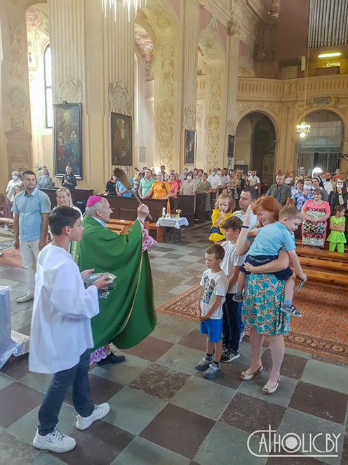 В воскресенье 25 июля, которое стало последним днём реколлекций, вместе с семьями молился Апостольский администратор sede vacante Минско-Могилёвской архиепархии епископ Казимир Великоселец. Иерарх возглавил проведение святой мессы в стародавнем несвижском костёле и благословил находящиеся там семьи. Во время реколлекций две семейные пары из Несвижа приняли Карту объединения Equipes Notre-Dame.