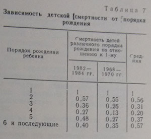 Полученные данные о детской смертности подтверждают тезис о санологической оптимальности 4-го ребенка, так как смертность можно рассматривать как патологию со смертельным исходом.